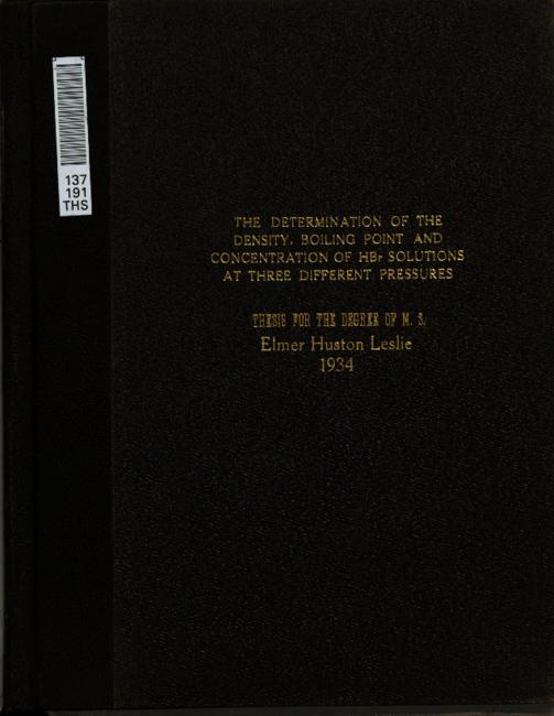The determination of the density, boiling point and concentration of HBr solutions at three different pressures