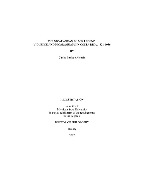 The Nicaraguan Black legend : violence and Nicaraguans in Costa Rica, 1821-1956