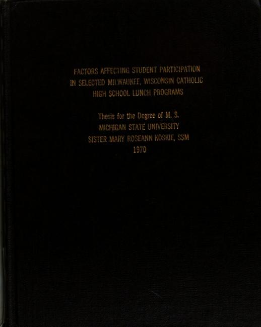 Factors affecting student participation in selected Milwaukee, Wisconsin Catholic high school lunch programs