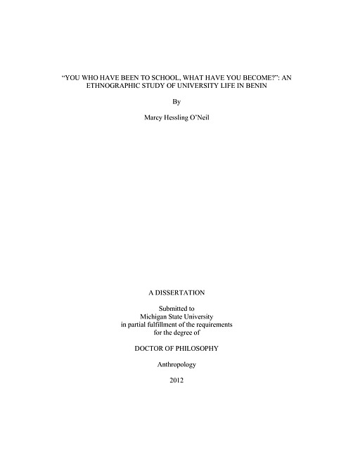 "You who have been to school, what have you become?" : an ethnographic study of university life in Benin