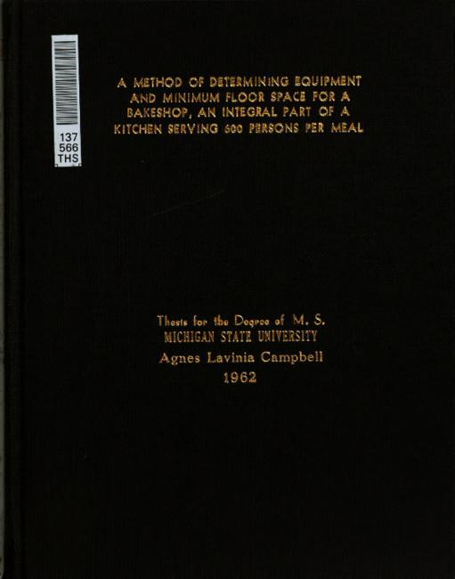 A method of determining equipment and minimum floor space for a bakeshop, an integral part of a kitchen serving 600 persons per meal