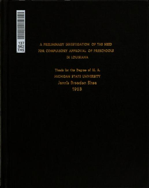 A preliminary investigation of the need for compulsory approval of preschools in Louisiana