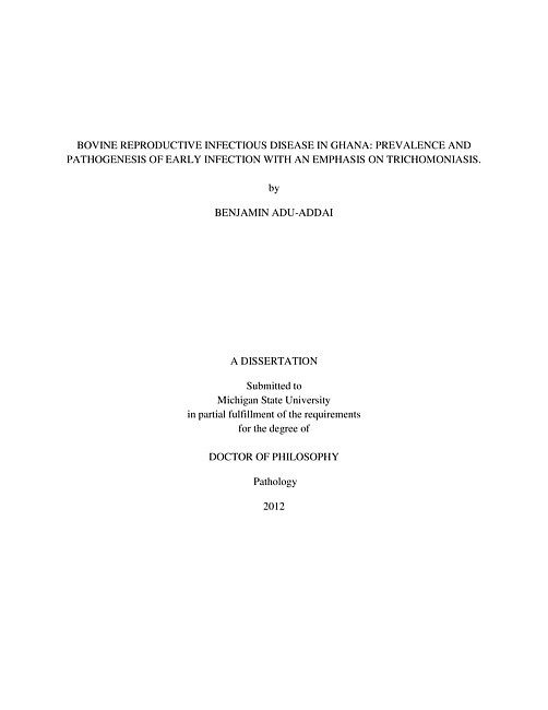 Bovine reproductive infectious disease in Ghana : prevalence and pathogenesis of early infection with an emphasis on trichomoniasis