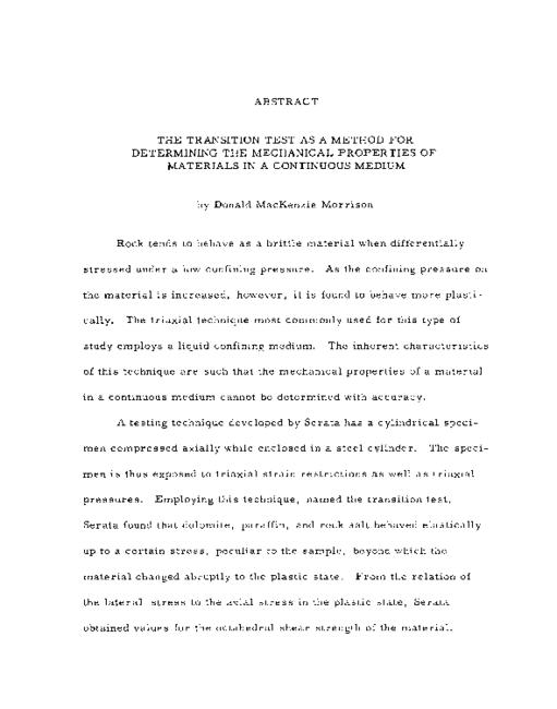 The transition test as a method for determining the mechanical properties of materials in a continuous medium