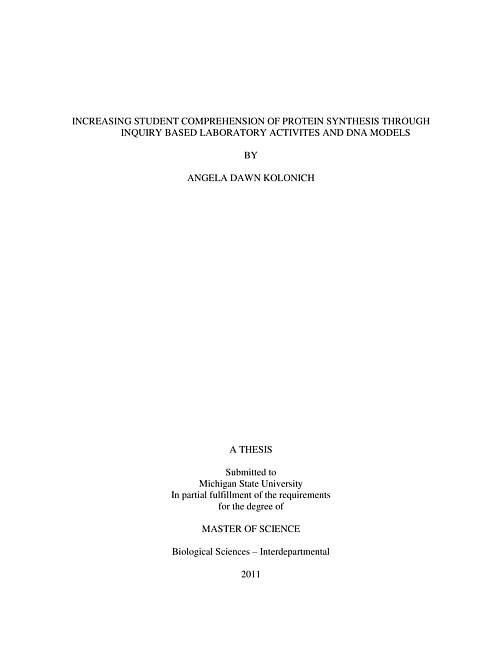 Increasing student comprehension of protein synthesis through inquiry based laboratory activites and DNA models