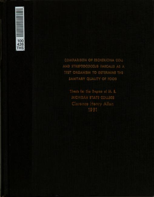 Comparison of Escherichia coli and Streptococcus faecalis as a test organism to determine the sanitary quality of food