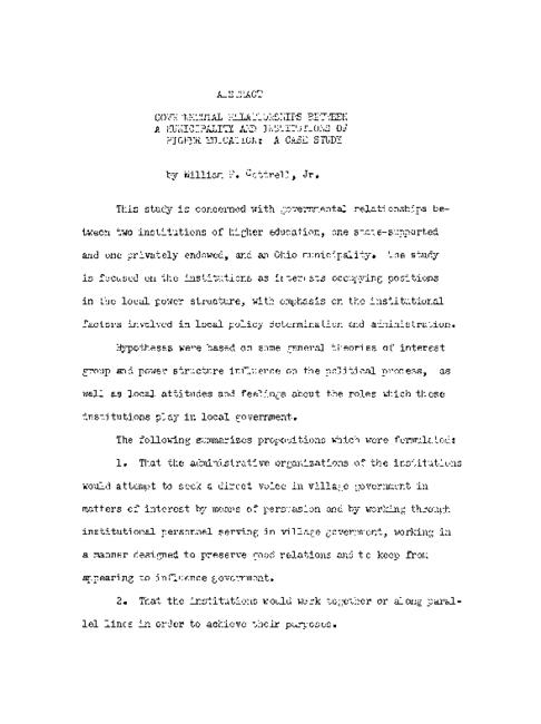 Governmental relationships between a municipality and institutions of higher education : a case study