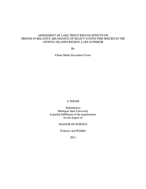 Assessment of lake trout refuge effects on trends in relative abundance of select native fish species in the Apostle Islands region, Lake Superior