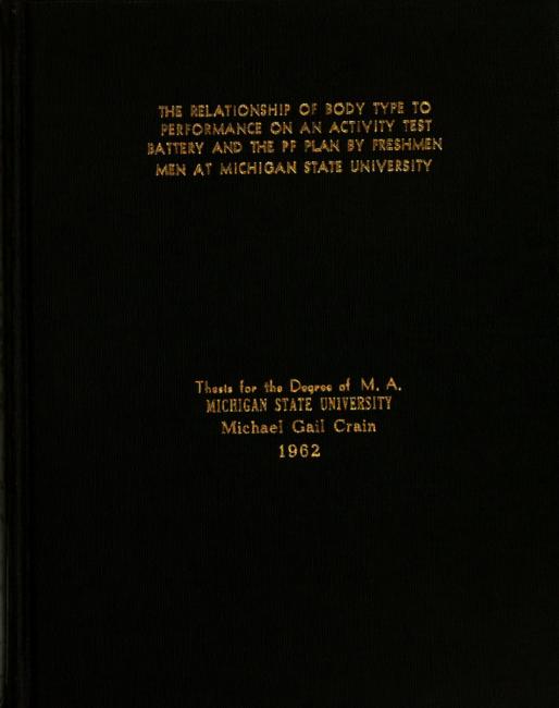 The relationship of body type to performance on an activity test battery and the PF Plan by freshmen men at Michigan State University