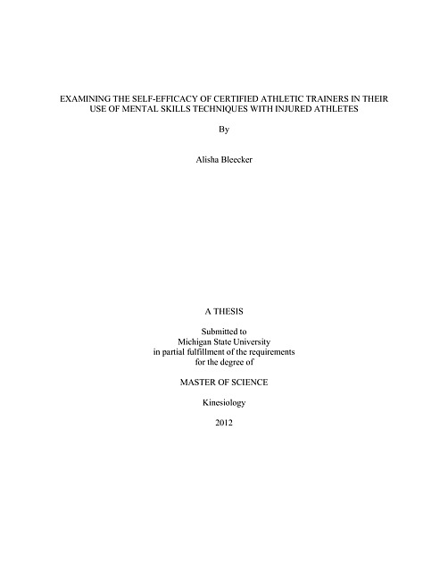 Examining the self-efficacy of certified athletic trainers in their use of mental skills techniques with injured athletes