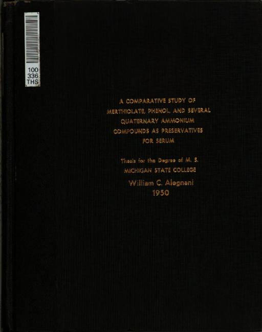 A comparative study of merthiolate, phenol, and several quaternary ammonium compounds as preservatives for serum