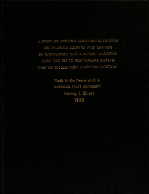 A study of livestock marketing in Lenawee and Hillsdale counties with emphasis on information that a district marketing agent can use to help farmers increase their net income from marketing livestock