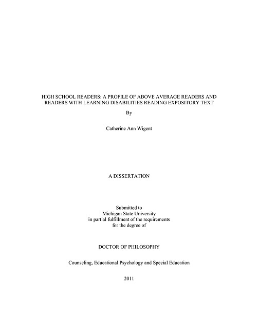 High school readers : a profile of above average readers and readers with learning disabilities reading expository text