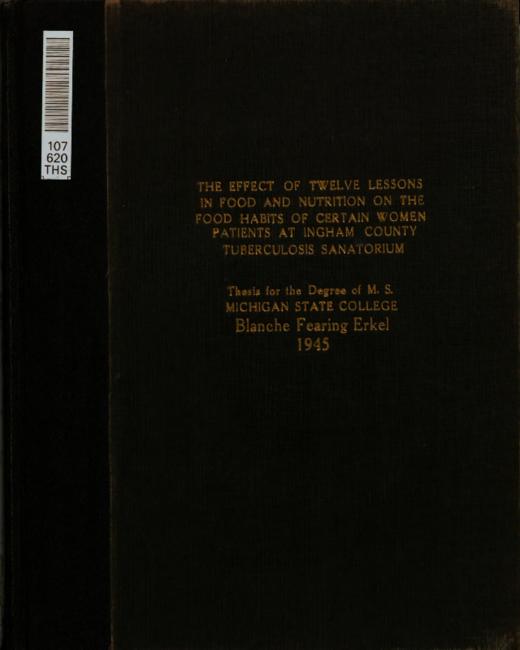 The effect of twelve lessons in food and nutrition on the food habits of certain women patients at Ingham county tuberculosis sanatorium