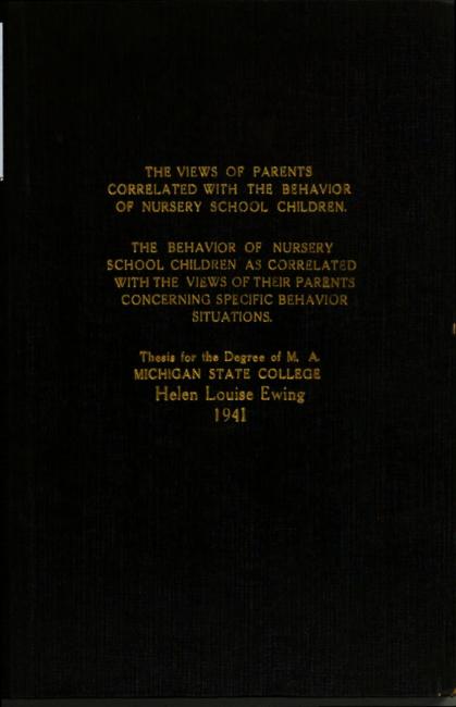 The views of parents correlated with the behavior of nursery school children. The behavior of nursery school children as correlated with the views of their parents concerning specific behavior situations