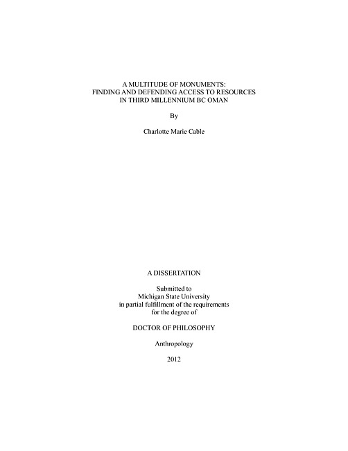 A multitude of monuments : finding and defending access to resources in third millennium BC Oman