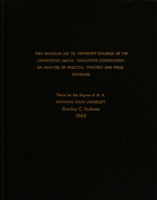 1963 Michigan aid to dependent children on the unemployed (ADCU̲) legislation controversy : an analysis of political strategy and press coverage