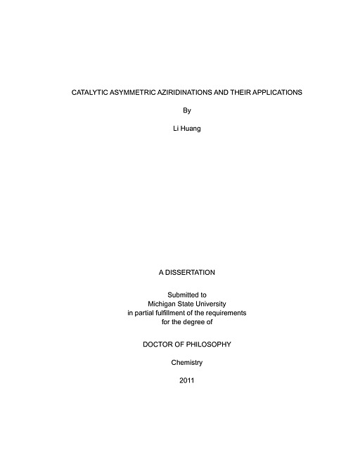 Catalytic asymmetric aziridinations and their applications
