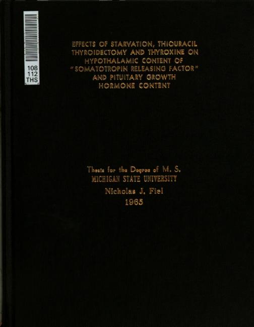 Effects of starvation, thiouracil, thyroidectomy and thyroxine on hypothalmic content of "somatotropin releasing factor" and pituitary growth hormone content