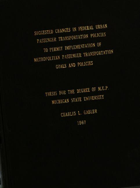 Suggested changes in federal urban passenger transportation policies to permit implementation of metropolitan passenger transportation goals and policies