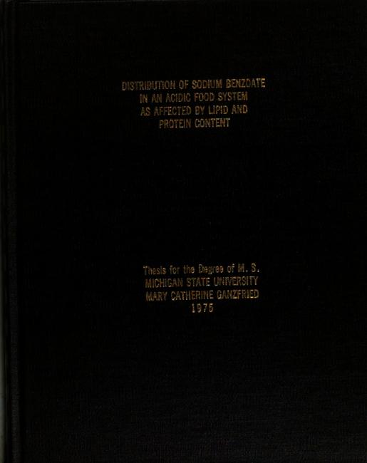 Distribution of sodium benzoate in an acidic food system as affected by lipid and protein content