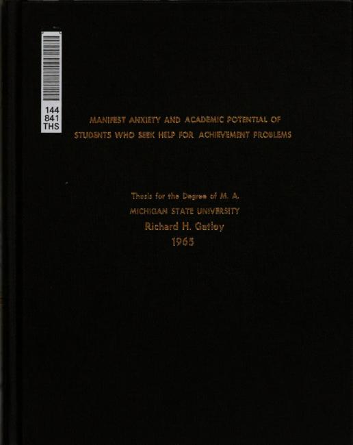 Manifest anxiety and academic potential of students who seek help for achievement problems