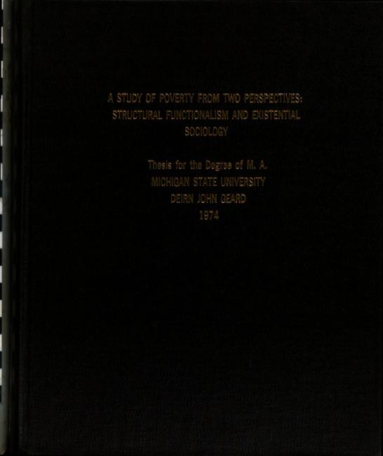 A study of proverty from two perspectives : strutural functionalism and existential sociology