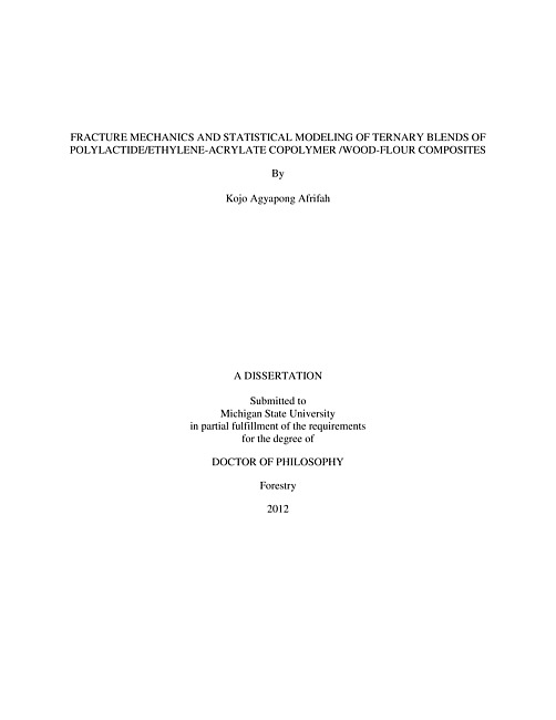 Fracture mechanics and statistical modeling of ternary blends of polylactide/ethylene-acrylate copolymer /wood-flour composites