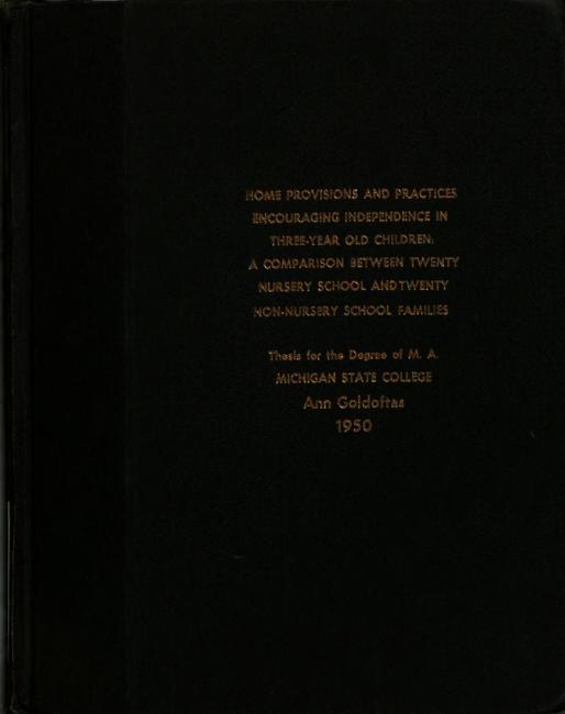 Home provisions and practices encouraging independence in three-year old children : a comparison between twenty nursery school and twenty non-nursery school families