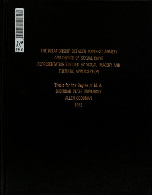 The relationship between manifest anxiety and the degree of sexual drive representation elicited by visual imagery and thematic apperception