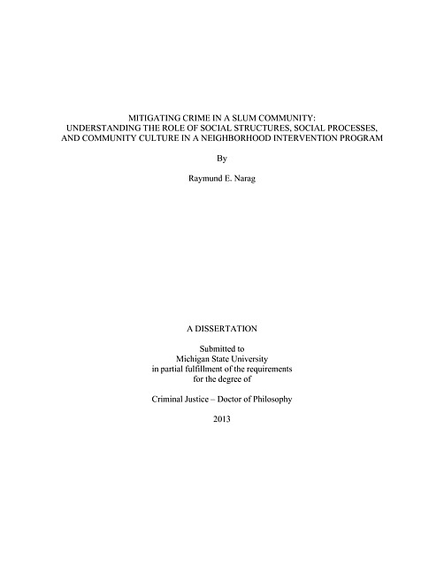 Mitigating crime in a slum community : understanding the role of social structures, social processes, and community culture in a neighborhood intervention program