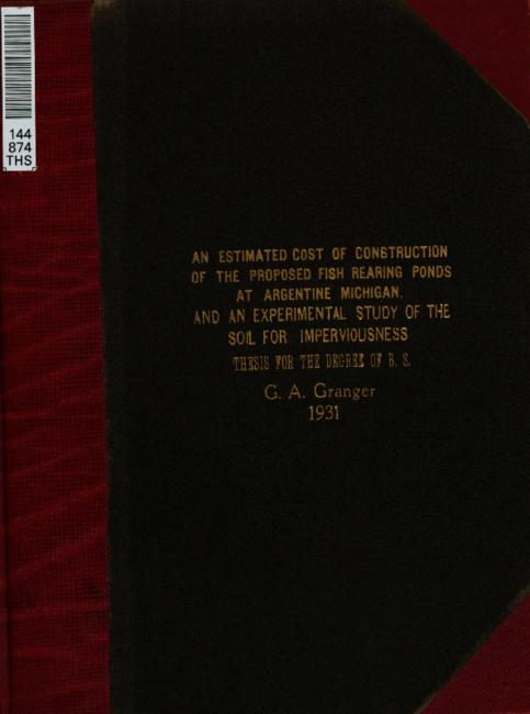 An estimated cost of construction of the proposed fish rearing ponds at Argentine Michigan, and an experimental study of the soil for imperviousness