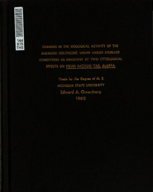 Changes in the biological activity of the alkaloid colchicine, under varied storage conditions, as measured by two cytological effects on Pisum sativum var. Alaska