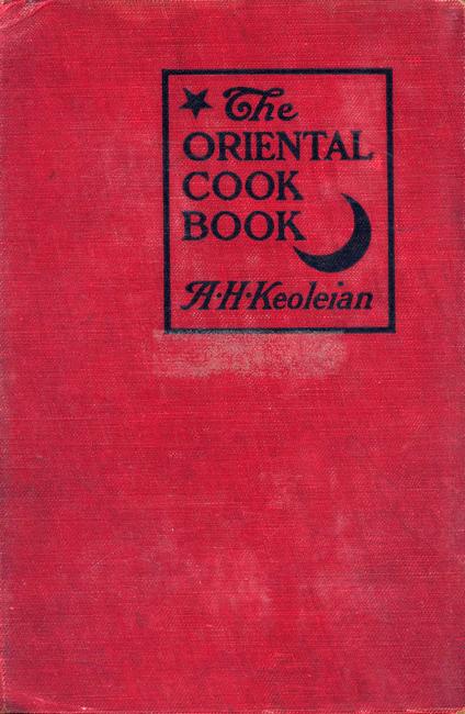 The author seems to be of Armenian extraction and is "formerly of Constantinople" [Istanbul]. He may have been in the food business there, either as a professional cook or a food merchant. In fact, in the last pages of this book, he offers special oriental ingredients for which his readers can send. For example: ripe black olives from Greece, Italy and Turkey retail at 15 to 20 cents per pound, dry chick peas are 8 to 10 cents a pound, cracked wheat is 5 to 6 cents per pound and pine-cone seeds are 30 t0 35 cents per pound - all plus "an additional sum of 10 per cent of the value of the order, for packing purposes, etc."