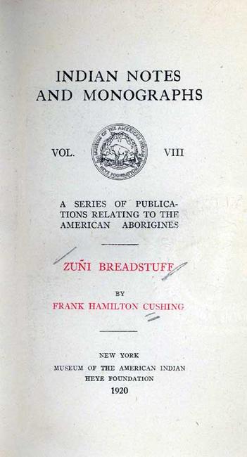 However, scholars, anthropologists and others, have helped preserve these traditions. Few books have done as thorough and comprehensive a study as this one. The author, Frank Hamilton Cushing, lived as an adopted member of the Zuni tribe from 1879 to 1884. During this time he examined and recorded information respecting not only the food products of the Zuni but also their methods of food preparation, and the myths, ceremonies, and daily customs pertaining thereto.