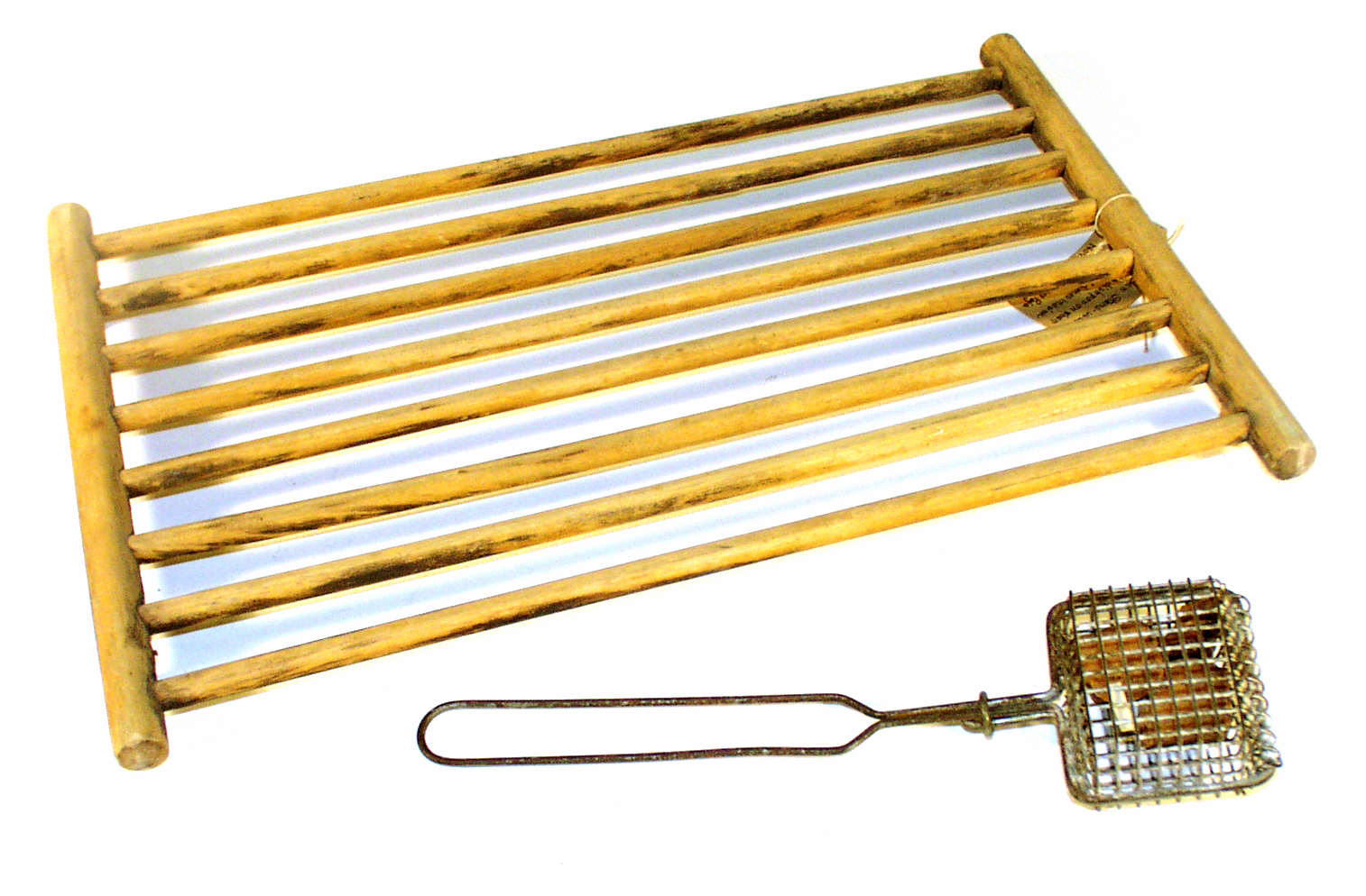 This wooden rack had been used in the sink under the dish pan. It has short "feet" at each corner.
