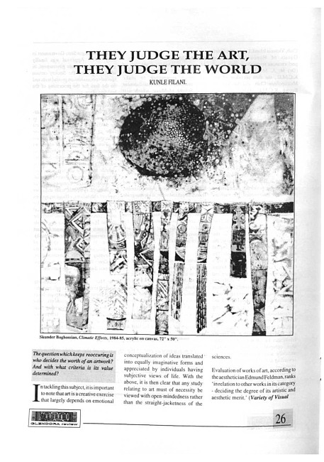 This article discusses who decides the worth of an artwork and anlayses with what criteria is its value determined. The author considers aesthetics, art form, art content, and form and content as shared experience. Objective evaluation or appreciation of an artwork should consider both aesthetics and situational aspects.