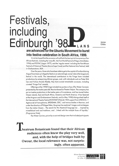 Festivals, including Edinburg '98