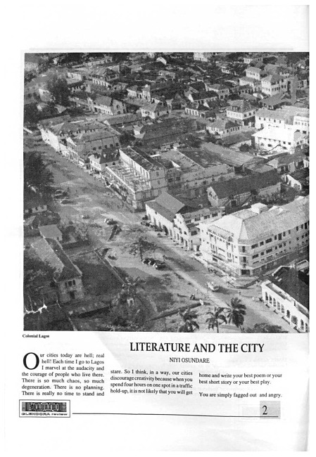 Leading Nigerian poet Niyi Osundare writes on the nature of cities in Nigeria, Africa and the world. Cities are supposed to be inspiring -- for example, Dublin for James Joyce, Abeokuta, Ibadan and Ishara for Wole Soyinka, and London for Charles Dickens -- but they have been dehumanized. In his work, Osundare tries to incorporate every part of the world he has visited.