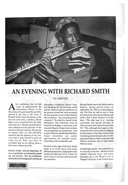 Richard Smith, African American musician, is interviewed by Tai Ade Fato about his life, music, and his visit to Nigeria.