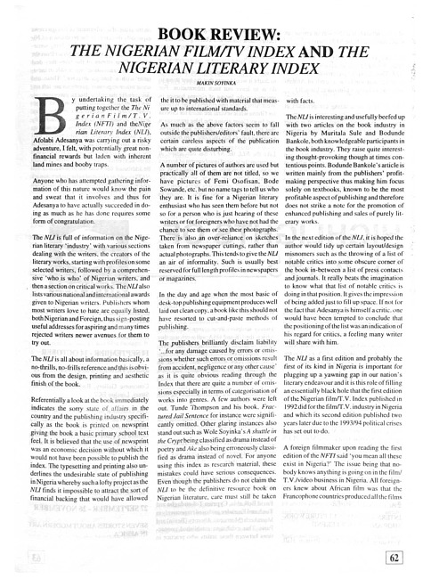 Book review : "The Nigerian film/TV index" and "The Nigerian literary index"