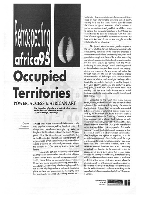 Retrospecting Africa '95 : occupied territories, power, access and African art