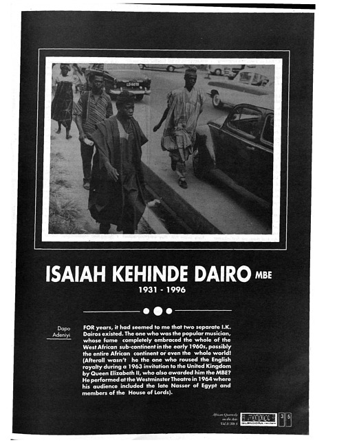 Isaiah Kehinde Dairo, MBE, 1931-1996
