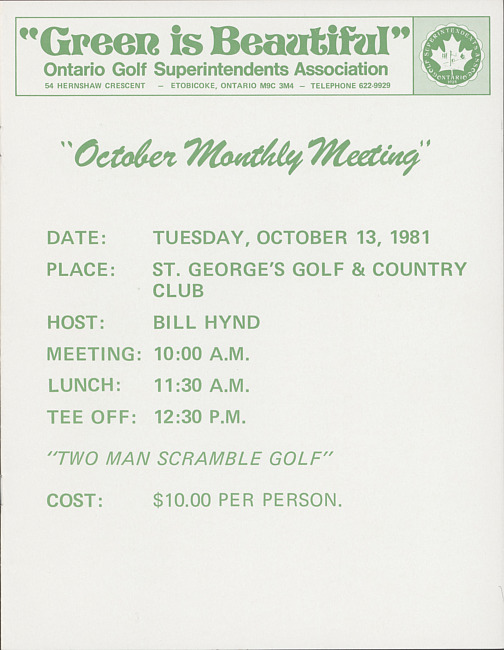 Guelph Turfgrass Institute, 328 Victoria Road South, Guelph, Ontario N1L 0H2; Phone: (519) 767-3341; Email: admin@ogsa.ca; Web: https://www.ogsa.ca/