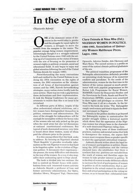 Review of: Clara Osinulu & Nina Mba (Eds.). Nigerian women in politics, 1986-1993. Kagos: Malthouse Press, 1996.