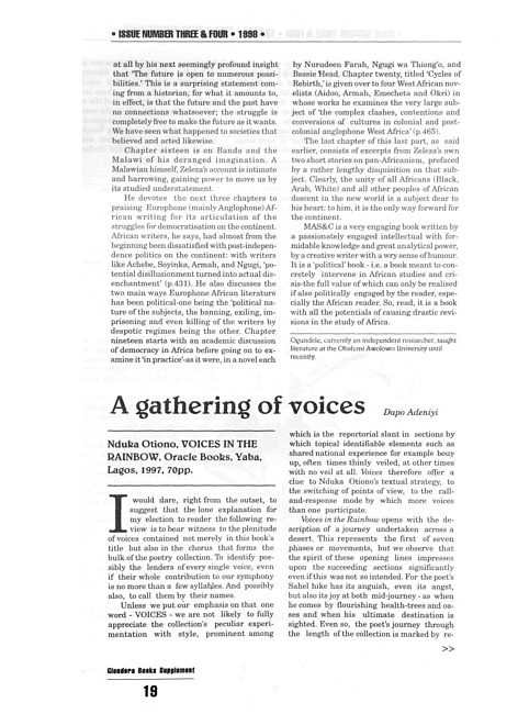 Review of: Nduba Otiono. Voices in the rainbow. Lagos: Oracle Books, 1997