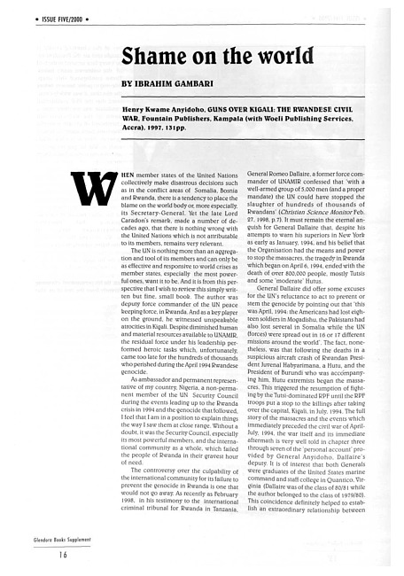Review of: Henry Kwame Anyidoho. Guns over Kigali: the Rwandese civil war. Accra: Woeli Publishing Services, 1997