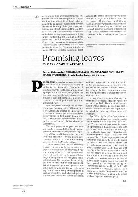Review of: Bunmi Oyinsan (ed.). Trembling leaves. Lagos: Oracle Books, 1999