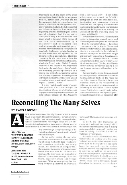 Review of: Alice Walker. The way forward is with a broken heart. New York: Random House, 2000, and Asha Bandele. The prisoner's wife. New York: Pocket Books, 1999