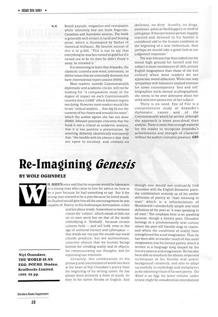 Review of: Niyi Osundare. The word is an egg: poems. Ibadan: Krafbooks Limited, 1999